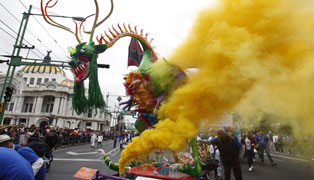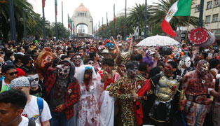 Más de 200 figuras fantásticas protagonizaron ayer la décima edición del Desfile y Concurso de Alebrijes Monumentales, ante las miradas de sorpresa de niños y adultos en el Centro de la Ciudad de México, en un acto organizado por el Museo de Arte Popular. Paralelamente se realizó la novena Marcha Zombie con Causa, cuyo propósito es recaudar alimentos para destinarlos a sectores vulnerables Fotos Víctor Camacho y Francisco Olvera