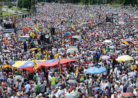 Movilización en Caracas de opositores al gobierno de Nicolás Maduro. Los principales dirigentes señalaron que la ofensiva es para lograr la destitución del presidente. En marchas en otros estados se registraron confrontaciones con saldo de 147 detenidos Foto Afp