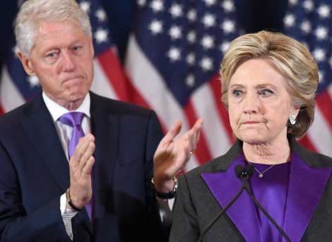 Hillary Clinton, acompañada por su esposo, el ex presidente Bill Clinton, reconoció ayer que la derrota