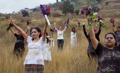 Mujeres realizan un performance en los límites del estado de México y la capital el país para exigir alto a la violencia de género y los feminicidios Foto Jair Cabrera