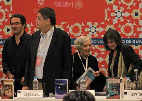 Los escritores Juan Gabriel Vásquez, Sergio Ramírez, Elena Poniatowska y Laura Restrepo opinaron sobre la realidad latinoamericana durante un encuentro que congregó a ocho galardonados con el Premio Alfaguara de Novela, en la Feria Internacional del Libro de Guadalajara Foto Arturo Campos Cedillo