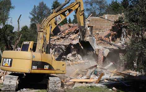 Con maquinaria pesada, trabajadores de la delegación Tlalpan derriban dos de las tres residencias construidas por ex funcionarios del PRD en suelos de conservación del paraje La Rufina. Una estaba deshabitada y la otra, de dos plantas, estaba amueblada e incluía un salón de fiestas. Las autoridades señalaron que los inmuebles pertenecen al actual diputado federal perredista Carlos Hernández y a Eloy Fuentes, ex director de Servicios Urbanos de esa demarcación. La tercera, del ex delegado Higinio Chávez, no fue tirada por un amparo interpuesto Foto Carlos Ramos Mamahua