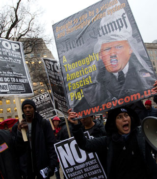 Una multitud marchó ayer en el centro de Washington (imagen) para conmemorar el día de Martin Luther King Jr y protestar contra las políticas antinmigrantes del presidente electo, quien tomará posesión este viernes. En tanto, una muchedumbre atiborró una histórica iglesia afroestadunidense para un acto en respaldo a los derechos de los indocumentados. Los oradores denunciaron al magnate por su odio y la amenaza de construir un muro en la frontera con México. Los participantes llevaban pancartas con mensajes como