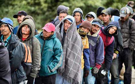 Inmigrantes que se dirigen hacia la frontera con Estados Unidos hacen fila para recibir alimentos en un centro comunitario de asistencia en Caborca, Sonora. En el Senado se anunció un plan de protección a connacionales que podrían ser deportados tras la asunción de Donald Trump. Solicitó a Hacienda que destine mil millones de pesos a consulados para que contraten abogados y traductores Foto Afp