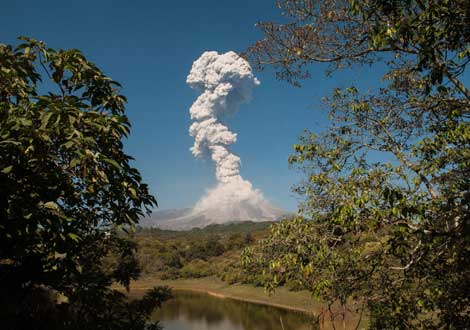 Espectacular fumarola del volcán de Fuego