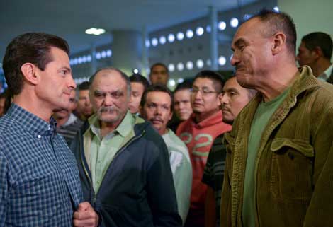 El presidente Enrique Peña Nieto dialoga con algunos de los 135 connacionales que ayer fueron repatriados de Estados Unidos. Les expresó: