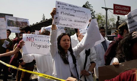 Estudiantes de posgrado de diversas universidades y centros de investigación públicos marcharon ayer del parque de La Bombilla a las instalaciones del Consejo Nacional de Ciencia y Tecnología para exigir que no se aplique recorte alguno a sus becas, debido a que la Ley para Determinar el Valor de Medida y Actualización establece una cifra menor a la otorgada con el salario mínimo, con el cual se calculaban los montos que les daban Foto Carlos Ramos Mamahua