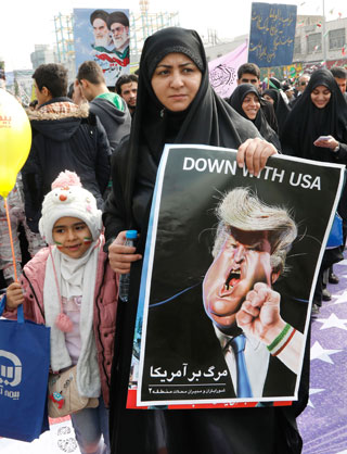 Muerte a Estados Unidos!, en el 38 aniversario de la revolución islámica, que en 1979 derrocó al sha de Irán, aliado de Washington, y denunciaron las
