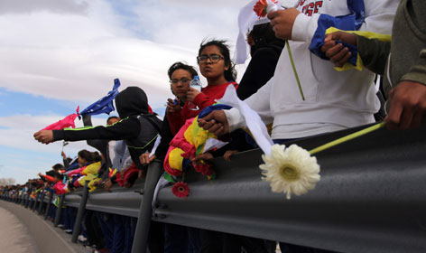 México no cederá ni un milímetro en temas como la construcción del muro anunciada por EU, afirmó el canciller Luis Videgaray en Bonn, Alemania, en el contexto de la reunión del G-20, mientras cientos de personas formaron este viernes un muro humano en las fronteras de Ciudad Juárez (en la imagen) y Tijuana, en rechazo a las políticas intinmigrantes de Donald Trump. El vocero de la Casa Blanca, Sean Spicer, desmintió la información divulgada ayer por Ap de que el mandatario sopesó una propuesta de movilizar hasta 100 mil efectivos de la Guardia Nacional para participar en redadas contra indocumentados. Los medios mentirosos no son mis enemigos, son enemigos de los estadunidenses, tuiteó el magnate Foto Afp