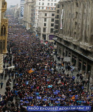 Más de 300 mil personas (160 mil según la policía) se manifestaron este sábado por segunda semana consecutiva en Barcelona en exigencia de trato digno para los refugiados de la guerra y la urgente acción de las autoridades para acoger a desplazados de conflictos bélicos como el de Siria, cuyas víctimas viven en condiciones infrahumanas en campos levantados precariamente en la región, en espera de que la UE cumpla la promesa de acogerlos Foto Ap