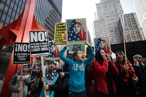 Las directrices incluidas en los memorandos elaborados por el Departamento de Seguridad Interior estadunidense también se enfocan en frenar el flujo de menores de edad no acompañados. En la imagen, musulmanas protestan contra el gobierno del presidente Donald Trump, ayer en Chicago, Illinois Foto Afp