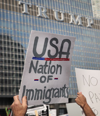Miles de personas se volcaron nuevamente en las calles de al menos 27 ciudades de Estados Unidos para manifestar su rechazo al gobierno del magnate. Imperaron leyendas como: no es mi presidente, ‘‘impeachment (destitución)’’, resiste e insiste, no al muro o este es un país de migrantes (en imagen de Chicago). El jefe de la Casa Blanca designó ayer al teniente general Herbert Raymont McMaster, experto en contrainsurgencia, como su nuevo asesor de seguridad Foto Afp