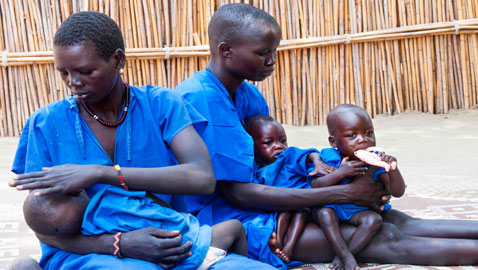 Dos mujeres atienden a sus hijos malnutridos en un centro de apoyo en Ganyel, en la localidad de Panyijiar. El país del centro de África enfrenta una de las peores crisis humanas debido a los conflictos internos, que han provocado cientos de muertes y han obligado a la población a abandonar sus hogares y sus fuentes de alimentación. Según la organización Oxfam, se estima que unas 100 mil personas padecen la hambruna. En Somalia, unas 110 personas fallecieron a consecuencia de la sequía en la región de Bay, informaron autoridades. La ONU calcula que 5 millones de habitantes de este país necesitan ayuda por la escasez de comida Foto Afp