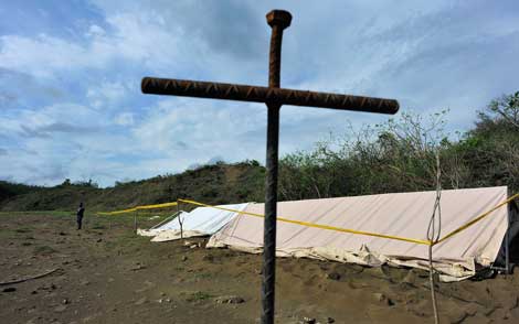 En el cementerio clandestino Colinas de Santa Fe, al norte del puerto de Veracruz, familiares de desaparecidos hallaron una enorme fosa a la que denominaron La Alberca, en la que el crimen organizado enterró decenas de cuerpos. En 2016, durante el festejo de Día de las Madres, de manera anónima se hizo llegar un mapa que ubicaba el terreno en los límites con el municipio de La Antigua. El 3 de agosto de ese año el Colectivo Solecito de Veracruz comenzó la búsqueda y hasta ahora ha hallado, con apoyo de autoridades, 253 restos humanos en 120 fosas Foto Sergio Hernández Vega