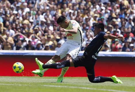 El equipo universitario, después de una desventaja de dos goles (Silvio Romero, al minuto 32, y Oribe Peralta, al 45) en el primer tiempo, logró regresar al partido para empatar con un doblete de Nicolás Castillo. Sin embargo, la hazaña auriazul no se pudo consumar por la anotación agónica de Cecilio Domínguez al 82 Foto Víctor Camacho