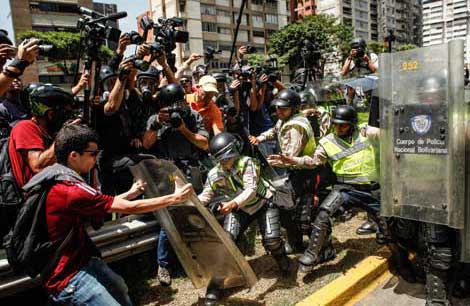 La policía impidió el paso de una marcha opositora que se dirigía al Congreso de Venezuela. Los manifestantes intentaron llegar por vías alternas, pero fueron reprimidos con gases lacrimógenos, perdigones y cañones de agua. Los inconformes respondieron lanzando piedras y otros objetos, mientras un grupo se enfrentó con los uniformados; el saldo fue de nueve heridos. La Asamblea Nacional suspendió su sesión en la que iba a debatir la remoción de magistrados del Tribunal Supremo, porque entre los afectados por los choques había legisladores Foto Xinhua