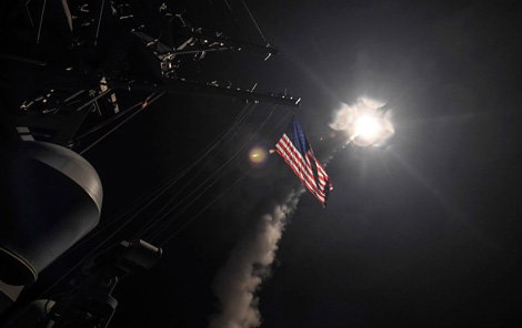 El presidente Donald Trump informó la noche del jueves que ordenó un ataque militar de represalia contra el campo de aviación desde el cual se perpetró, dijo, el bombardeo a la población de Jan Sheijun con armas químicas, que causó 86 muertos. La ofensiva de Estados Unidos provocó pérdidas, informó una fuente de Damasco, sin precisar si humanas o materiales. El gobierno de Rusia advirtió a Washington sobre las consecuencias negativas de una intervención en el país asiático. En la imagen, lanzamiento de un misil Tomahawk desde el destructor USS Porter Foto Ap