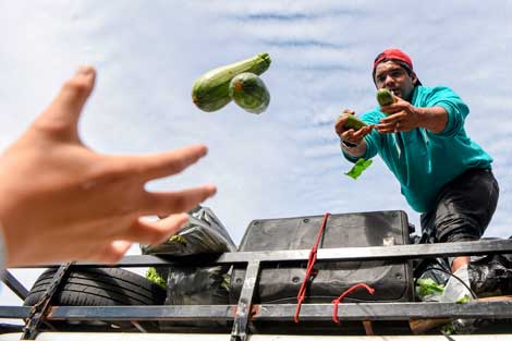 Productores de la Unión de Trabajadores de la Tierra realizaron una singular protesta en Plaza de Mayo al repartir 20 toneladas de verduras a centenares de personas. Demandaron al gobierno de Mauricio Macri apoyo para ese sector, crear una ley de acceso a la tierra y otra de emergencia para las economías regionales. También reclamaron que cesen los desalojos de campesinos Foto Afp