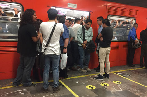 Jorge Gaviño, director del Sistema de Transporte Colectivo, afirmó que hubo un incremento de 200 mil usuarios, lo cual se reflejó en vagones repletos, por la entrada en vigor de las nuevas tarifas del transporte público concesionado. Las autoridades reforzaron la vigilancia para evitar abusos. La gran mayoría de pasajeros desconocía el incremento de un peso en el servicio Foto Víctor Camacho