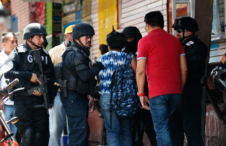 Alrededor de las 10:45 de la mañana, sujetos fuertemente armados asaltaron un local ubicado a un costado de la Plaza Meave (imagen), en la Ciudad de México, lo que originó una balacera cuando comerciantes del lugar y agentes intentaron detenerlos, con saldo de un supuesto delincuente muerto y un cómplice y un vendedor heridos. En tanto, en la Plaza Bella Mexiquense, en la colonia Héroes de Tecámac, estado de México, un grupo armado intentó robar una camioneta de valores, lo que desató un tiroteo que dejó tres muertos, entre ellos un custodio y dos presuntos delincuentes Foto Alfredo Domínguez
