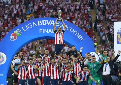 El equipo Guadalajara festeja el logro del campeonato del Torneo Clausura 2017, en el estadio Omnilife Foto Jam Media