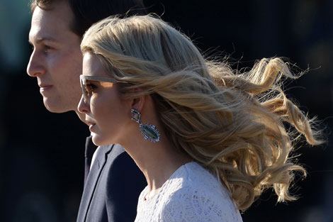 Ivanka Trump y su esposo Jared Kushner en una imagen tomada el 23 de mayo durante un acto oficial en Washington. El papel del yerno del presidente estadunidense ha desatado gran polémica tras las revelaciones del diario The Washington Post de que intentó establecer un canal secreto con Rusia durante el periodo de transición entre la elección y la asunción del magnate, el 20 de enero Foto Afp