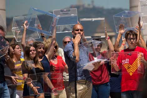 Decenas de miles de personas se concentraron ayer domingo en Barcelona para defender el referendo sobre la independencia de la región autonómica, que las autoridades pretenden organizar a principios de octubre, pese a la prohibición del gobierno conservador de Mariano Rajoy. Frente al palacio de Montjüic, el ex entrenador del equipo culé leyó un manifiesto: