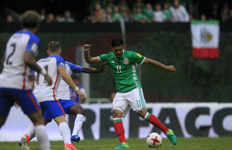 Las selecciones de México y Estados Unidos sacaron la igualada con goles de Michael Bradley y de Carlos Vela (en la imagen, al momento del disparo para la anotación), en el hexagonal de la Concacaf. El resultado deja pendiente la clasificación de la escuadra nacional al Mundial de Rusia 2018, aunque se mantiene como líder, con 14 unidades. Juan Carlos Osorio justificó: