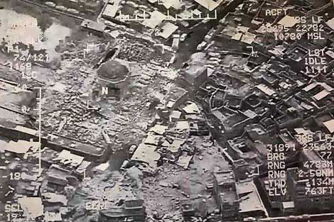 La mezquita de al-Nuri, famosa por su alminar inclinado, fue derruida mientras las fuerzas de Irak, apoyadas por una alianza liderada por Estados Unidos, avanzaban para retomar el control de la ciudad. La edificación tiene un valor simbólico por ser el lugar en el cual el dirigente del Estado Islámico, Abu Bakr al-Baghdadi, declaró el