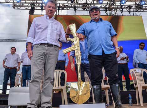 El presidente Santos dice que la paz ‘‘es irreversible, durante el acto en sitio emblemático de la guerrilla