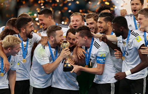 Jugadores del equipo teutón acarician el trofeo tras vencer 1-0 a Chile, en el estadio de San Petersburgo. El equipo de Joachim Löw aprovechó un error de la defensa de La Roja en el minuto 19, que el delantero Lars Stindl convirtió en gol. La escuadra sudamericana nunca bajó los brazos, pero el conjunto alemán logró equilibrar el partido. En Moscú, Portugal obtuvo el tercer lugar tras remontar y vencer 2-1 a la selección mexicana en tiempo extra. Un desquiciado Juan Carlos Osorio fue expulsado tras gritar y dar un empellón al cuarto árbitro Foto Ap