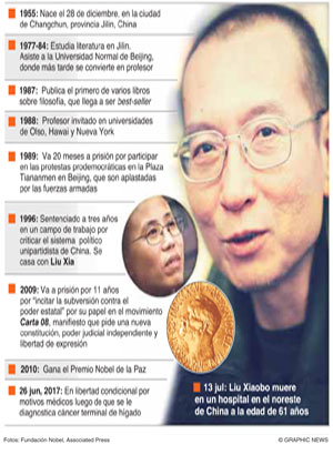 El escritor chino y premio Nobel de la Paz sufría de cáncer de hígado