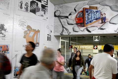 Con los brazos abiertos doña Borola Tacuche de Burrón da la bienvenida a miles de usuarios que recorren parte de la estación Zapata del Metro. Algunos se acercan para fotografiarse; otros miran las paredes y techo tapizados con las imágenes de cientos de cartones. Es el Museo Emblemático de los Caricaturistas Mexicanos, inaugurado ayer.