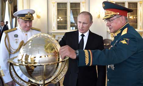 Esperábamos que la situación cambiara de alguna manera, pero si cambia, al parecer, no será pronto, dijo el gobernante al explicar las razones de su decisión. Añadió que, por ahora, no prevé más acciones. En la imagen, el mandario es acompañado en San Petersburgo por los titulares de las fuerzas armadas, ciudad a la que acudió para encabezar las celebraciones del Día de la Marina Foto Afp