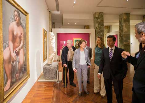 La muestra, que fue inaugurada el 9 de junio en el Museo del Palacio de Bellas Artes, reúne 147 obras que evidencian las coincidencias y paralelismos entre los dos artistas plásticos. En la imagen acompañan al Presidente los pintores Manuel Felguérez y Sandra Pani (de blusa verde), así como María Cristina García Cepeda, titular de la Secretaría de Cultura del gobierno federal, y Miguel Fernández Félix (derecha), director del recinto Foto Presidencia