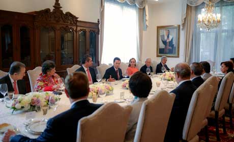 El presidente Enrique Peña Nieto comió ayer con dirigentes y ex presidentes del PRI, la víspera de la celebración de su 22 asamblea nacional ordinaria, cita a la que acudirán el mandatario y los miembros del gabinete. No se prevé confrontación, debido a que ayer la comisión de dictamen ratificó los textos aprobados en la semana, en particular para abrir el abanico de opciones para elegir candidato presidencial. El secretario de Gobernación, Miguel Ángel Osorio Chong, consideró que los candados para designar abanderado sólo estorbaban Foto Presidencia