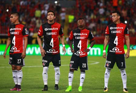 En apoyo al capitán de la Selección Nacional, Rafa Márquez, jugadores del Atlas se pusieron la camiseta con el número 4 en el encuentro de anoche frente al América en el estadio Jalisco, partido en el que las Águilas se impusieron 1-0. Antes, El Káiser agradeció vía Twitter el respaldo de sus compañeros y deseó buena suerte a su equipo Foto Alfredo Moya /JAM Media