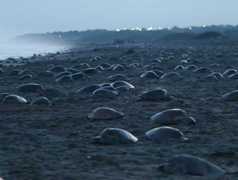 Unos 15 millones de huevos fueron depositados por el quelonio en el santuario de la playa La Escobilla. La especie, que fue consideraba en peligro de extinción por varios años, ahora está en etapa de recuperación, expuso la bióloga Érika Peralta, responsable del lugar, el cual es administrado por la Comisión Nacional de Áreas Naturales Protegidas, con el apoyo de la Marina y de la Procuraduría Federal de Protección al Ambiente. La especialista agregó que es la cuarta arribazón de este año y se esperan otras en septiembre y octubre Foto Jorge A. Pérez Alfonso