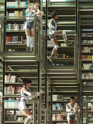Las instalaciones de la Biblioteca Vasconcelos, en Buenavista, se convertirán en escenario de la obra Héroes, de la coreógrafa mexicana Lydia Romero. La pieza dancística es una historia épica futurista en la que dos bandos antagónicos: Los bibliófilos y Los invasores, se disputan la apropiación del conocimiento de la humanidad. La imagen corresponde a un ensayo; el 24 de agosto será el estreno Foto María Luisa Severiano