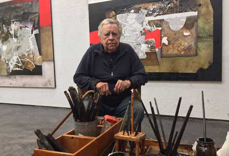 El artista plástico, quien el próximo diciembre cumplirá 89 años, no deja de trabajar, como se observa en su estudio donde cuelgan cuadros de reciente factura. El próximo sábado será inaugurada la exposición Los Felguérez de Felguérez, en la sede del Seminario de Cultura Mexicana, en Polanco. Adelanta que tiene otros proyectos, entre ellos una gran muestra en el Museo Universitario de Arte Contemporáneo, de la Universidad Nacional Autónoma de México, para cuando celebre sus 90 años Foto Guillermo Sologuren