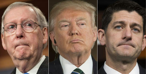 El mandatario censuró al jefe de la bancada republicana en el Senado, Mitch McConnell (izquierda) y al presidente de la Cámara de Representantes, Paul Ryan, por no apoyarlo para tener un presupuesto a modo.