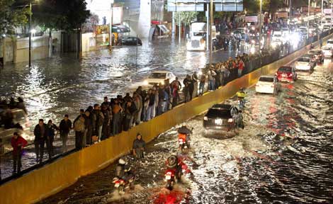 Las precipitación provocó la suspensión de operaciones en el Aeropuerto Internacional de Ciudad de México, anegaciones en el Circuito Interior, a la altura de la terminal aérea (imagen), y en la avenida Oceanía, así como el desbordamiento del río de Los Remedios. Cinco estaciones del Metro también resultaron afectadas y cancelaron el servicio, y algunos bajopuentes quedaron inundados. En la colonia Pensador Mexicano, delegación Venustiano Carranza, reportaron 164 viviendas dañadas, luego de que el vaso regulador de aguas negras rebasó su capacidad. También hubo encharcamientos en Cuajimalpa, Cuauhtémoc, Gustavo A. Madero, Azcapotzalco, Iztacalco e Iztapalapa Foto Víctor Camacho