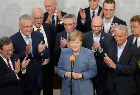 La victoria de la canciller en las elecciones legislativas de este domingo tuvo un sabor amargo por el ascenso de la ultraderechista Alternativa para Alemania, que llegará al Parlamento como tercera fuerza. Fue un voto de castigo a la gobernante por su manejo de la crisis de los refugiados en 2015, cuando entraron al país de forma descontrolada casi 900 mil solicitantes de asilo. Además, su bloque formado por la Unión Demócrata Cristiana y la Unión Social Cristiana, tuvo su peor resultado al obtener entre 32.8 y 33 por ciento de los sufragios Foto Ap