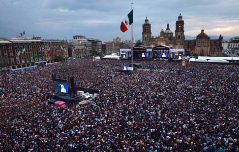 ¡México, México, México!retumbaron una y otra vez en la gran plancha. El momento más emotivo fue cuando las miles de personas se unieron, con el puño en alto, para guardar un minuto de silencio en honor de las víctimas. En el concierto participaron Bronco, Julieta Venegas, Jarabe de Palo, Emmanuel y Mijares, Juanes, Chayanne y Miguel Bosé, entre muchos otros. En videos intervinieron Cold Play y Roger Waters, que dedicaron sus piezas al pueblo mexicano Foto Cristina Rodríguez