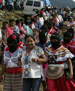 Hacia la nueva esperanzay con bases de apoyo del EZLN, en lo que fue su primera parada de la gira que la aspirante a candidata independiente por la Presidencia de la República realizará en territorio zapatista, del 13 al 19 de este mes. Participaron en el acto los comandantes Everilda y Tacho Foto José Carlo González