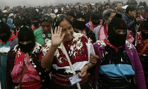 A pesar de las trampas seguiremos adelante. Hubo interrupciones en Internet al pasar por varias zonas de Chiapas, detalló ante miles de zapatistas reunidos en Oventic Foto José Carlo González