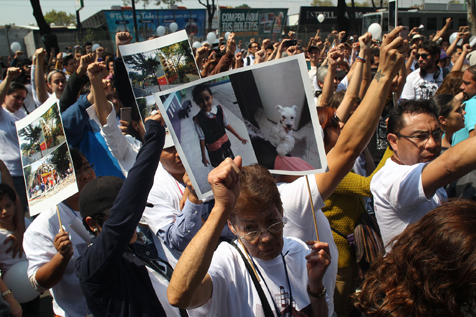Con el puño en alto, habitantes del multifamiliar Tlalpan guardaron un minuto de silencio y colocaron coronas, ramos y fotografías de las víctimas frente al edificio 1-C, que se derrumbó el 19 de septiembre por el terremoto. Marisol Arriaga, en nombre de la asamblea de vecinos del lugar, pidió a los capitalinos que no los olviden:
