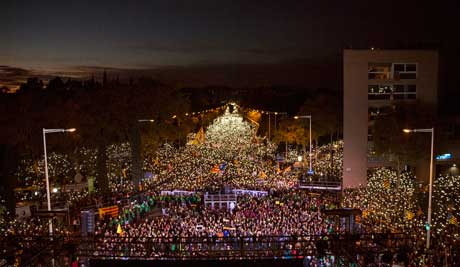 Cientos de miles recorrieron una vez más las calles de Barcelona y las llenaron de banderas independentistas y carteles con reivindicaciones secesionistas, para exigir la libertad de los presos políticos del movimiento separatista. Encabezaron la protesta familiares del cesado presidente, Carles Puigdemont, y de sus 14 consejeros (cuatro de los cuales están con él en Bélgica), así como su vicepresidente, Oriol Junqueras Foto Ap