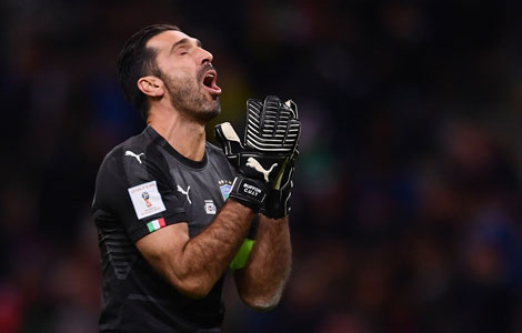 La selección italiana de futbol no participará en la máxima contienda del orbe al empatar a cero con Suecia en el partido de la repesca europea realizado en Milán, luego de haber perdido 1-0 en el encuentro de ida. La escuadra azzurra, cuatro veces campeona del mundo, no se perdía una cita desde 1958. La frustración del portero Gianluigi Buffon fue patente, ya que buscaba el récord de disputar su sexta copa Foto Afp