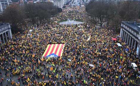 La capital política e institucional de la Unión Europea fue ayer escenario de una marcha de más de 45 mil ciudadanos procedentes de Cataluña que exigieron respeto a sus reinvindicaciones independentistas y que haya una salida negociada al conflicto con el Estado español. En su discurso, el ex presidente Carles Puigdemont censuró a dirigentes europeos y les demandó no ser cómplices del gobernante derechista Mariano Rajoy: